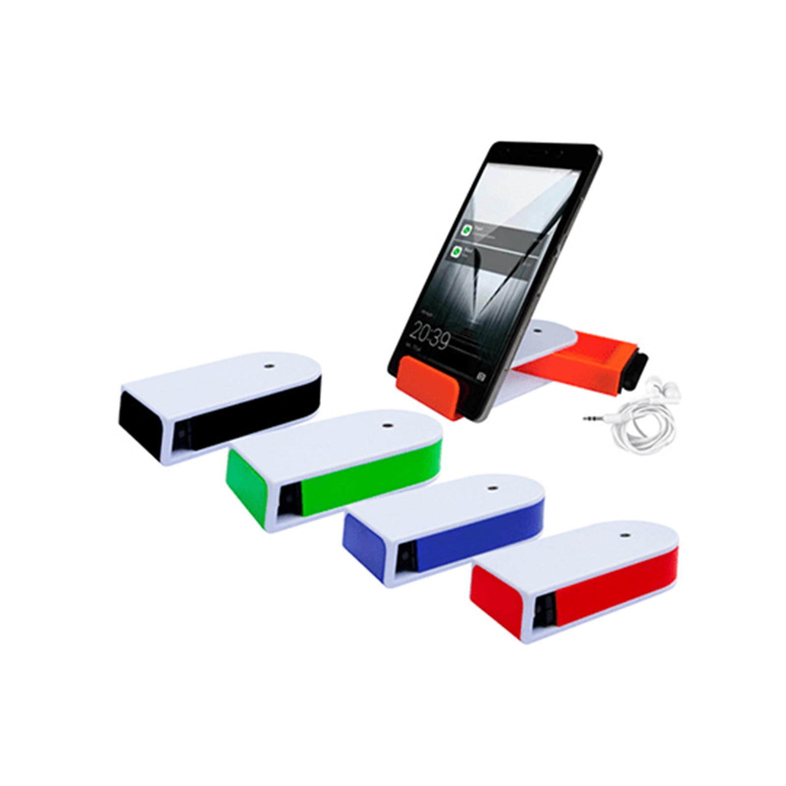 - Porta celular de plástico con audífonos y limpiador de pantalla.