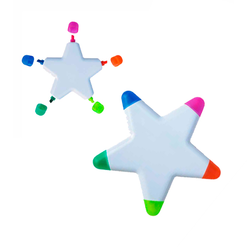 - Resaltador en forma de estrella con 5 puntas. Colores Anaranjado, Verde, Amarillo, Turqueza y Rosado.
