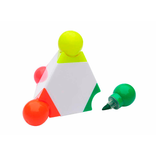 - Resaltador en forma de pirámide. Cuatro puntas de colores anaranjado, Verde, Amarillo y Rosado.